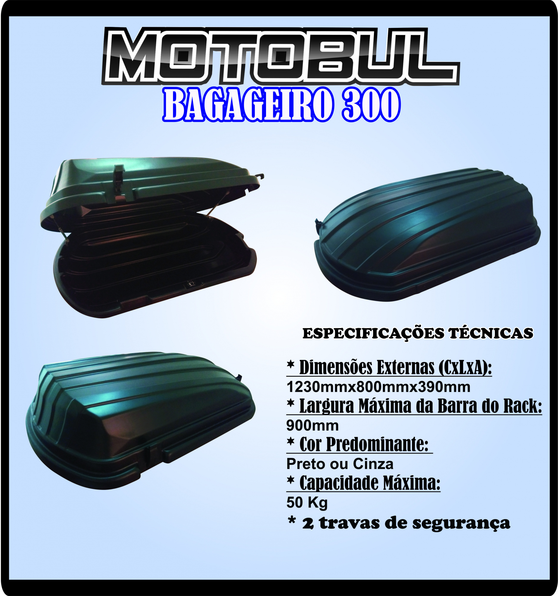 Bagageiro Maleiro de Teto 300 Litros 50Kg